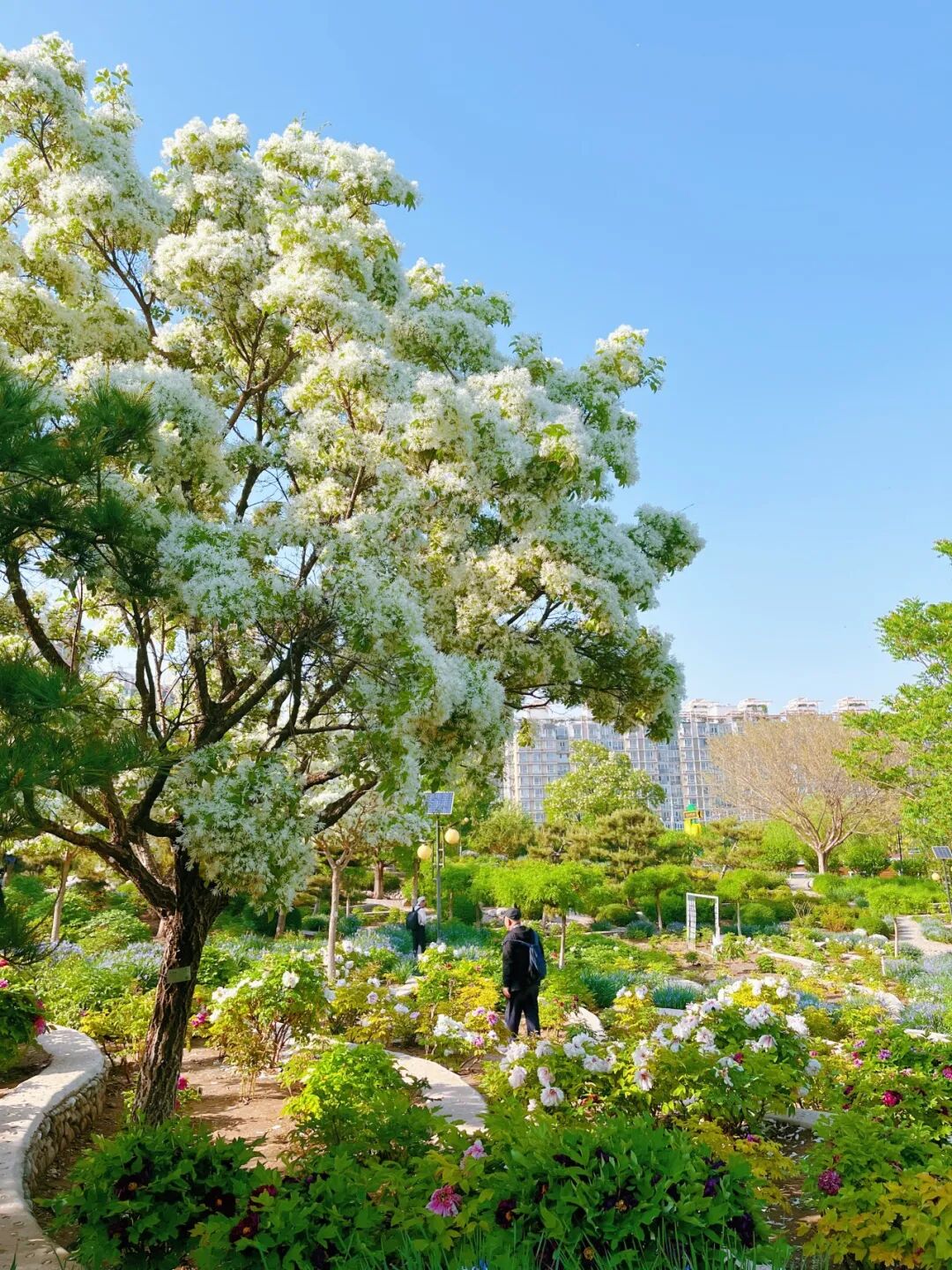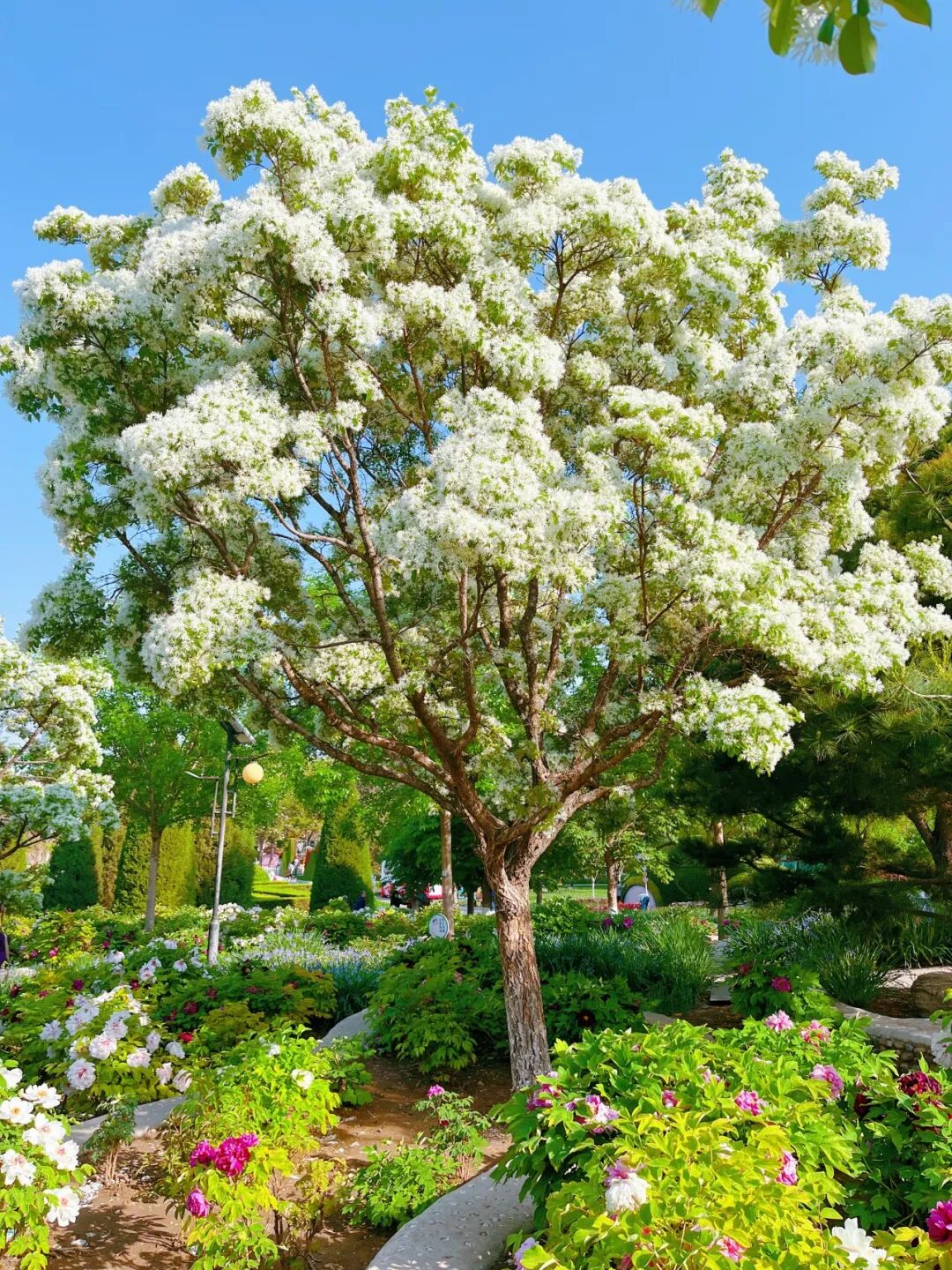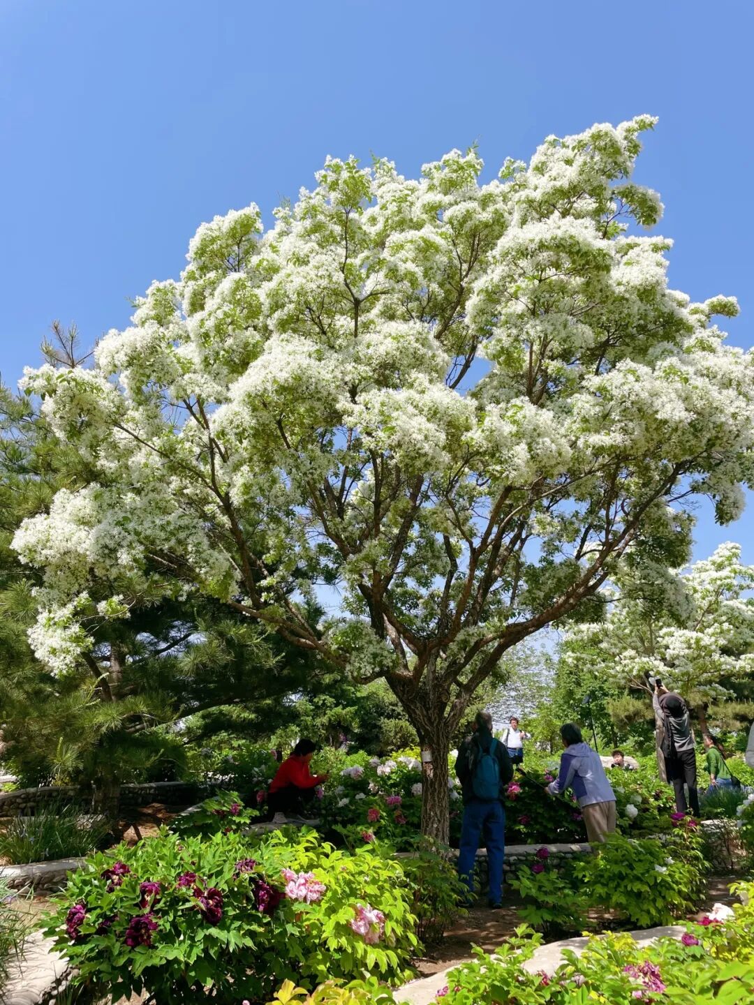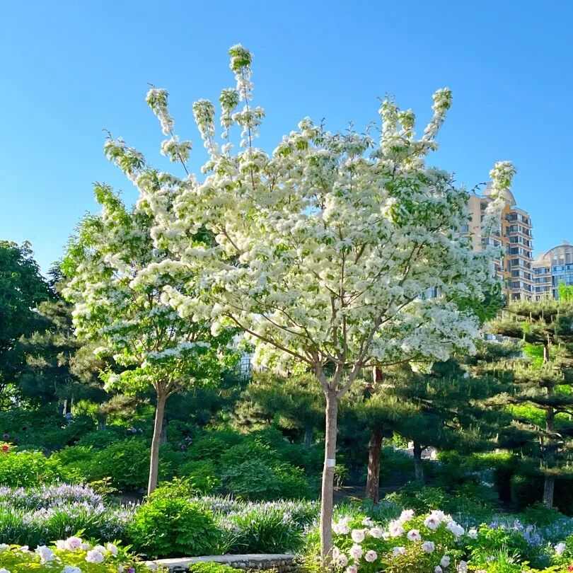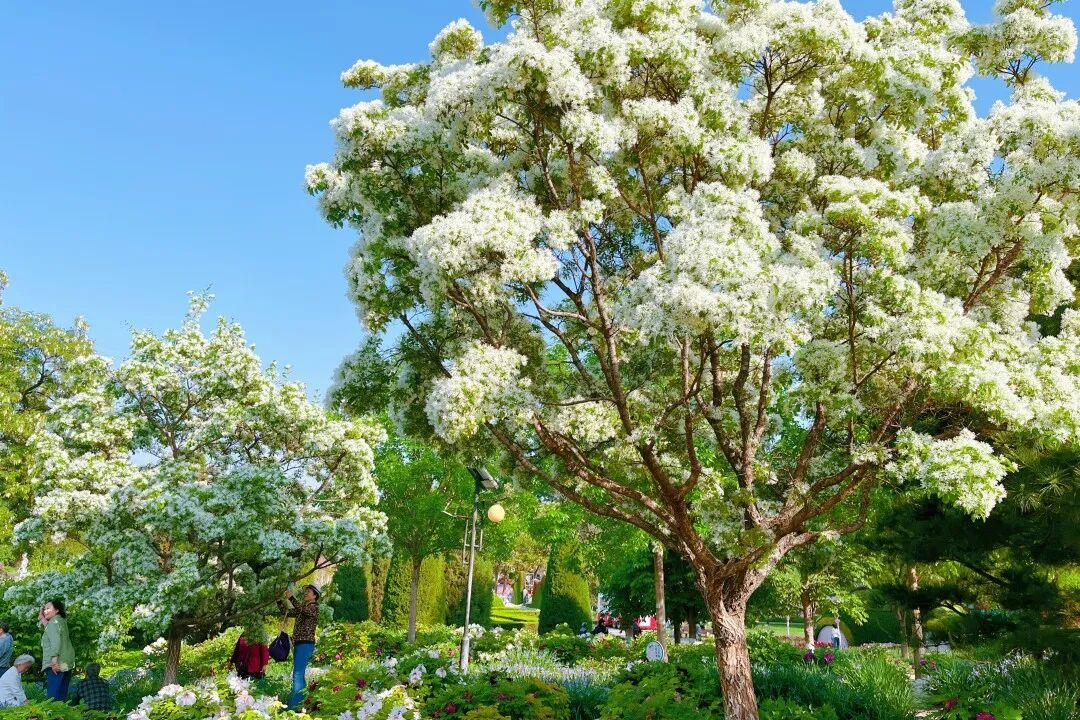 在逛牡丹园的同时还有惊喜哦,丝状的花穗缀满枝头,像一簇簇温柔的流苏,白的似雾,一团团又似云朵,风一吹轻轻摇曳,仙气飘飘氛围感拉满。