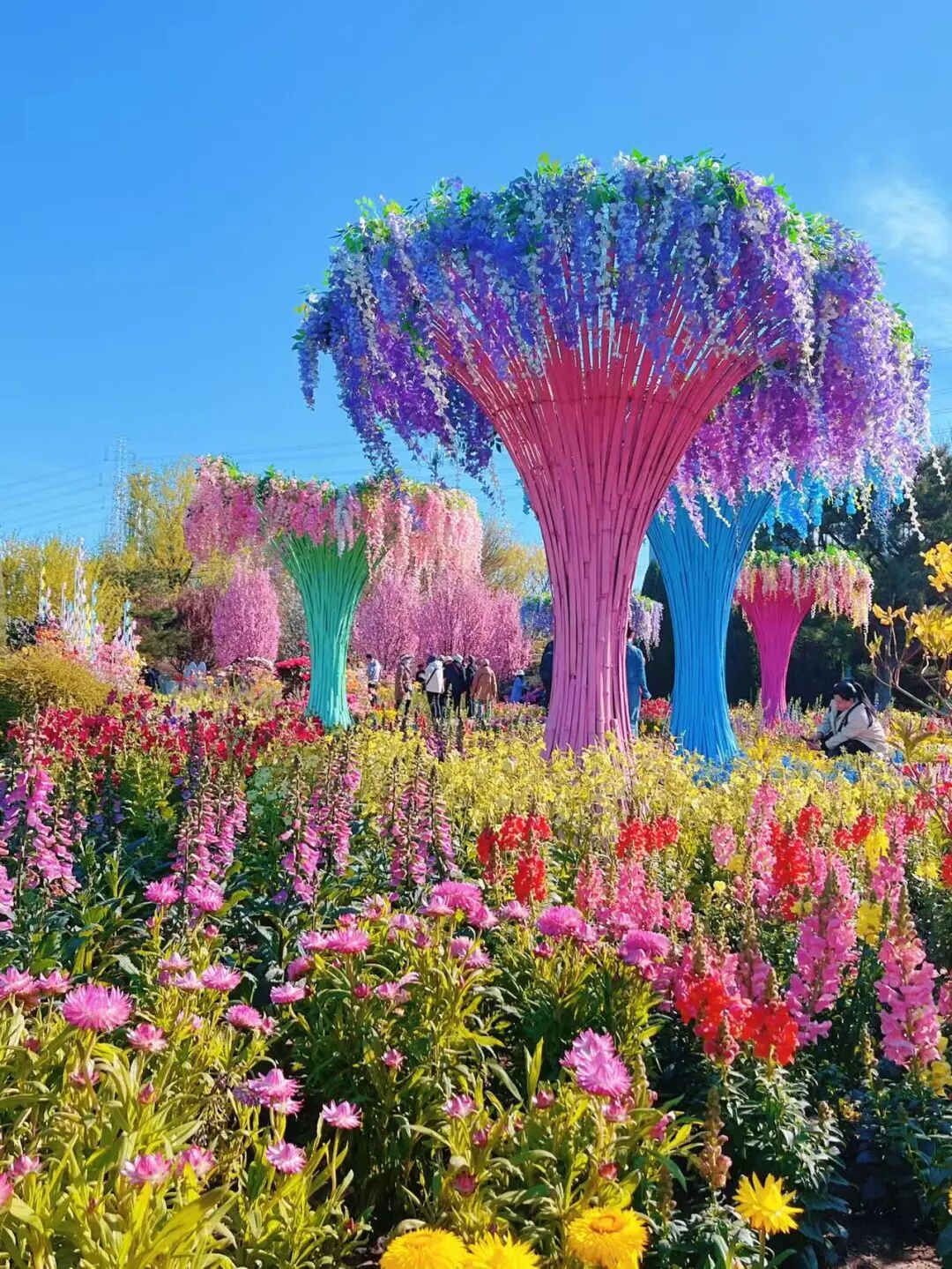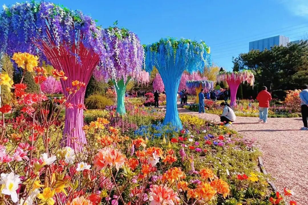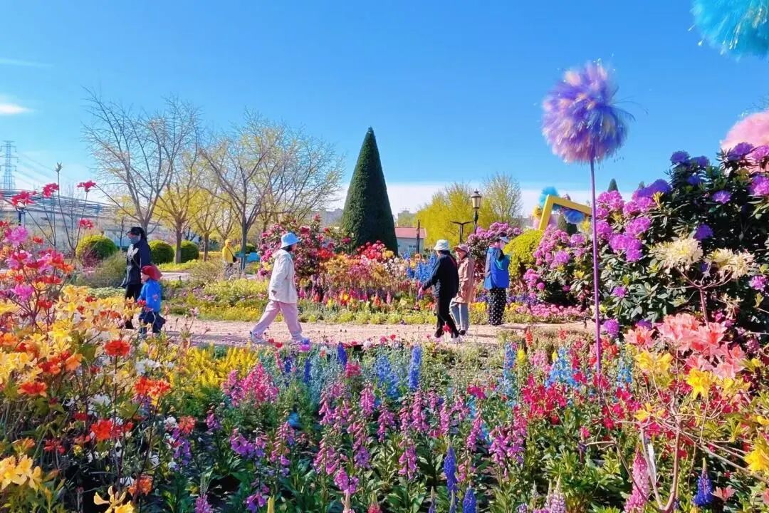 最最治愈的就是这片多巴胺花海啦!高饱和色彩直接拉满,粉、黄、紫、橙、蓝的小花铺满整片草坪,一眼望去全是欢喜,烦恼瞬间清零~
