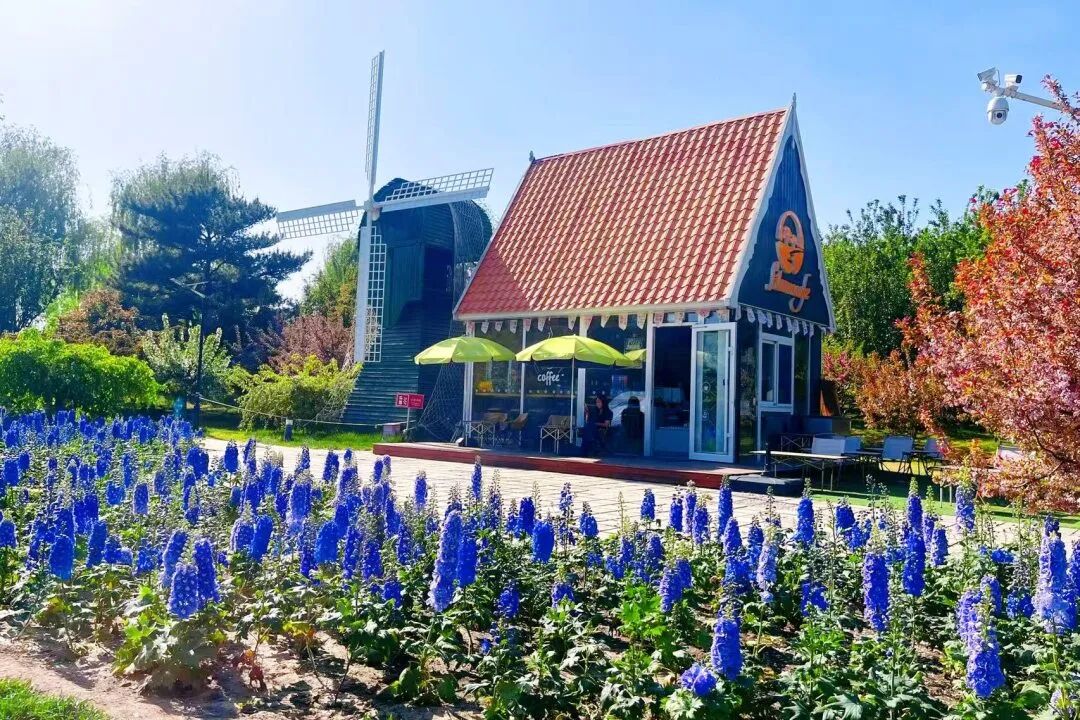 荷兰园草坪上,自带清冷氛围感的大花飞燕,与风车小屋相结合,瞬间解锁春日新风格。