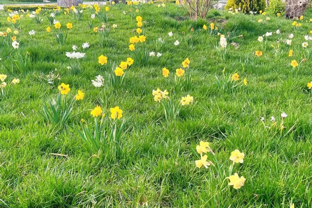 点缀于紫薇园草坪间的洋水仙和郁金香,小巧玲珑又清新灵动,充满野趣。