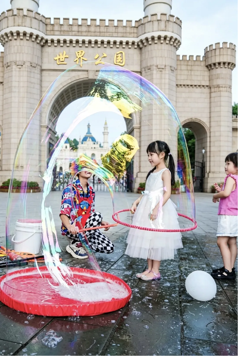 此外,欧洲魔幻天团宫廷小丑带来幽默搞笑互动演出,网红人偶憨态可掬,定点互动、巡游吸睛,泡泡秀、魔幻奇妙夜等特色演艺轮番上演,全天数十场互动演出覆盖不同时段,满足全年龄段游客游玩需求。