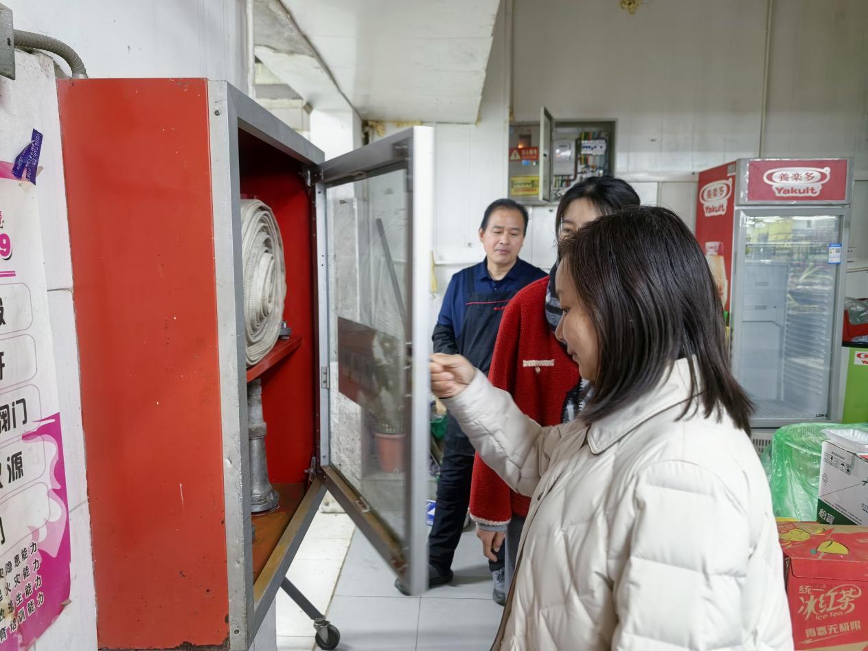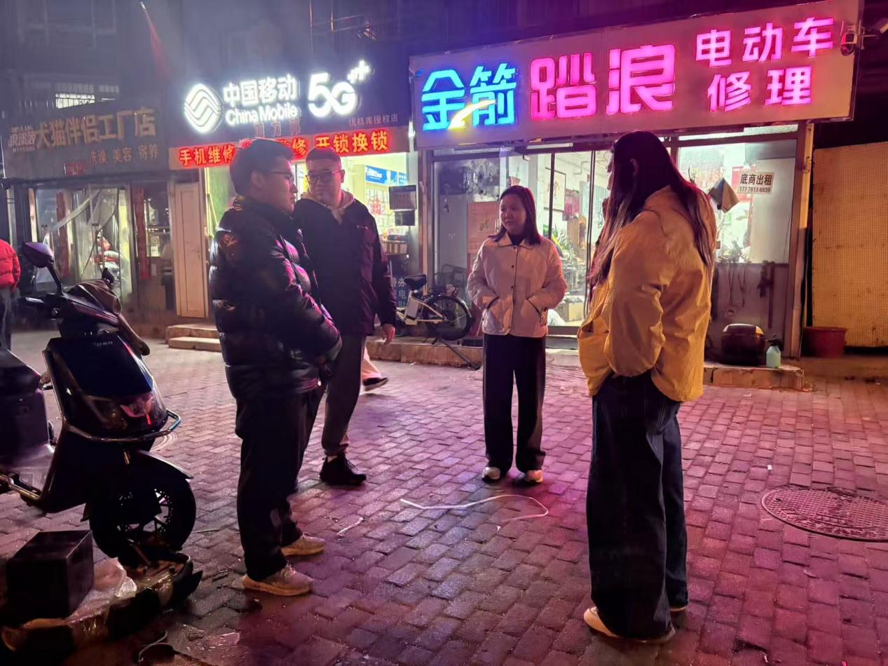 街道办事处副主任张星星带队前往成仪路社区,对沿街商户及周边公厕开展夜间专项巡查,重点整治违规住人、私拉乱接、杂物堆放等问题,细致核查消防器材配备、用电用气安全情况,现场宣传安全管理规定,净化沿街经营环境。