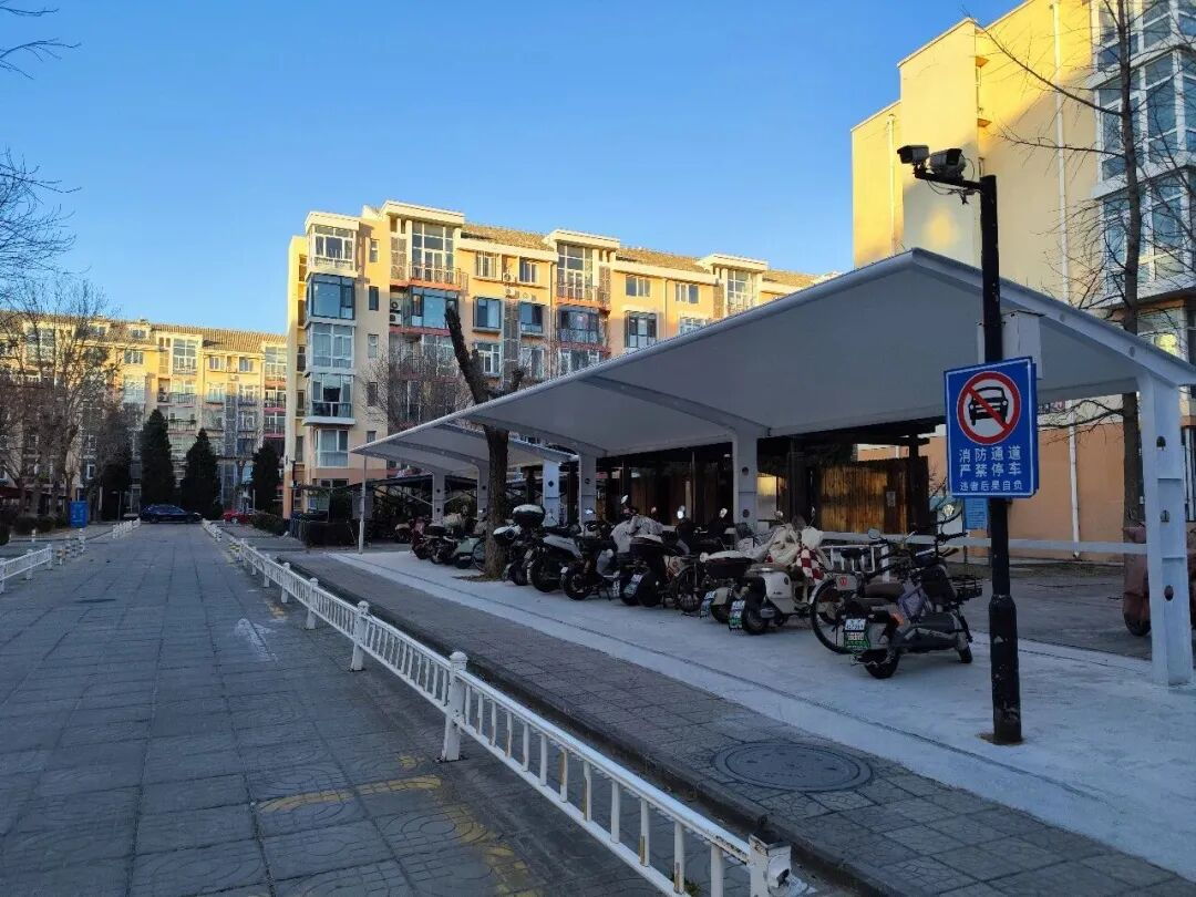 南宫智苑小区建成年代较早,由于未规划自行车停放区域,长期存在车辆乱停乱放、充电车位被挤占等问题,单栋楼前无序停放的车辆最多达30余辆。面对这一治理盲区,社区党委创新“向边角地要空间”思路,通过民主协商凝聚共识,利用两处闲置地新建车棚,实现“停车规范、充电便捷、环境提升”。