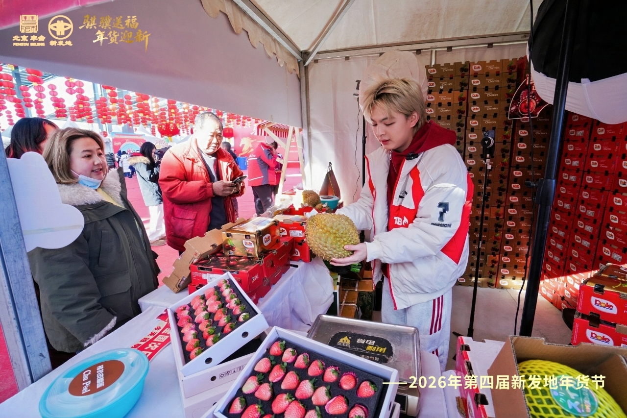 镇赉大米、湖北天门特色蔬菜、马来西亚臭脾气的猫榴莲、智利车厘子、草莓柿子、天津迎宾肉食、河北旱碱彩麦、新疆和田大枣、密云水库鱼、海南椰子水、天津小站稻、永清西红柿、敖汉小米、万安黄金西柚、方城百草香猪、定西宽粉、贵州山地生态鸡蛋、建坤食品、亿卖琳调料、沂蒙山优质农产品、丹东草莓等等,千里之外的正宗年味与文化,依托发达的物流网络与精准的产销衔接,得以快速汇聚首都。北京市民无需远行,便能轻松购齐来自五湖四海的特色年货,让一桌团圆的年夜饭,浓缩天南地北的丰饶滋味,也“装”下满满的全国祝福。