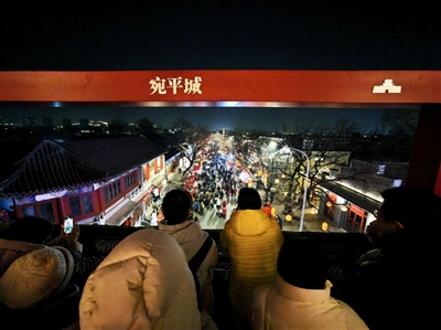 “快看!月亮真的红了。”3月3日是元宵节,随着夜幕降临,一轮“红月”缓缓爬上宛平城上的夜空。城内,非遗鱼灯巡游,三十余场民俗活动在街巷院落间“散点开花”。天上月圆,人间团圆,这场“天上红月+地上鱼灯”的双重景观,为持续了17天的宛平新春活动画上句号:春节期间游客累计突破45万人次。客流高峰期连续三天突破6万人次。游客平均停留时长超过3小时,每天有两成以上游客从京津冀其他城市专程“赴京赶戏”;包括《新闻联播》在内的40余家央媒及市媒争相报道,全网阅读量突破6500万。