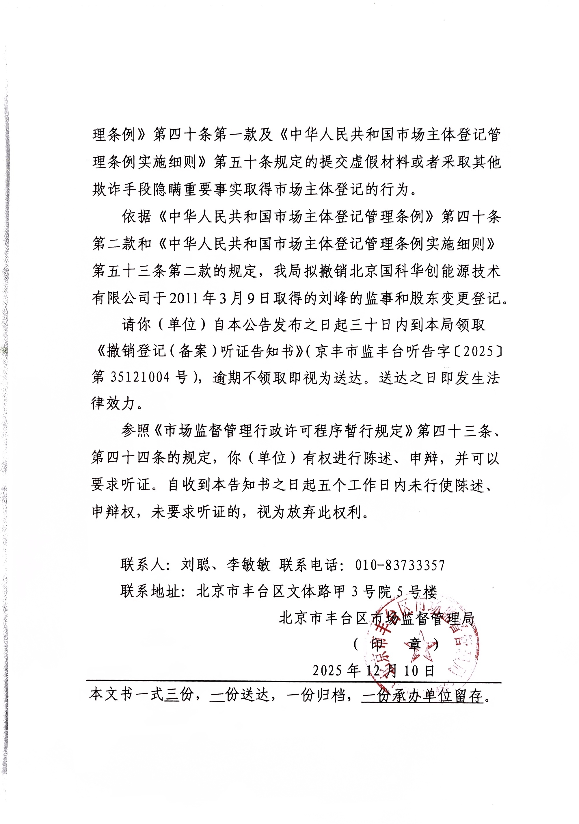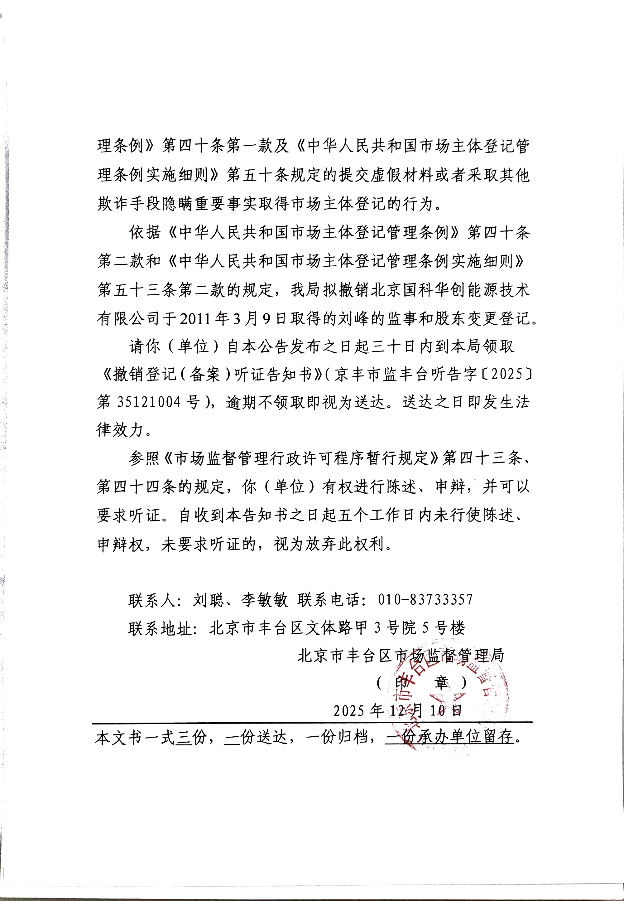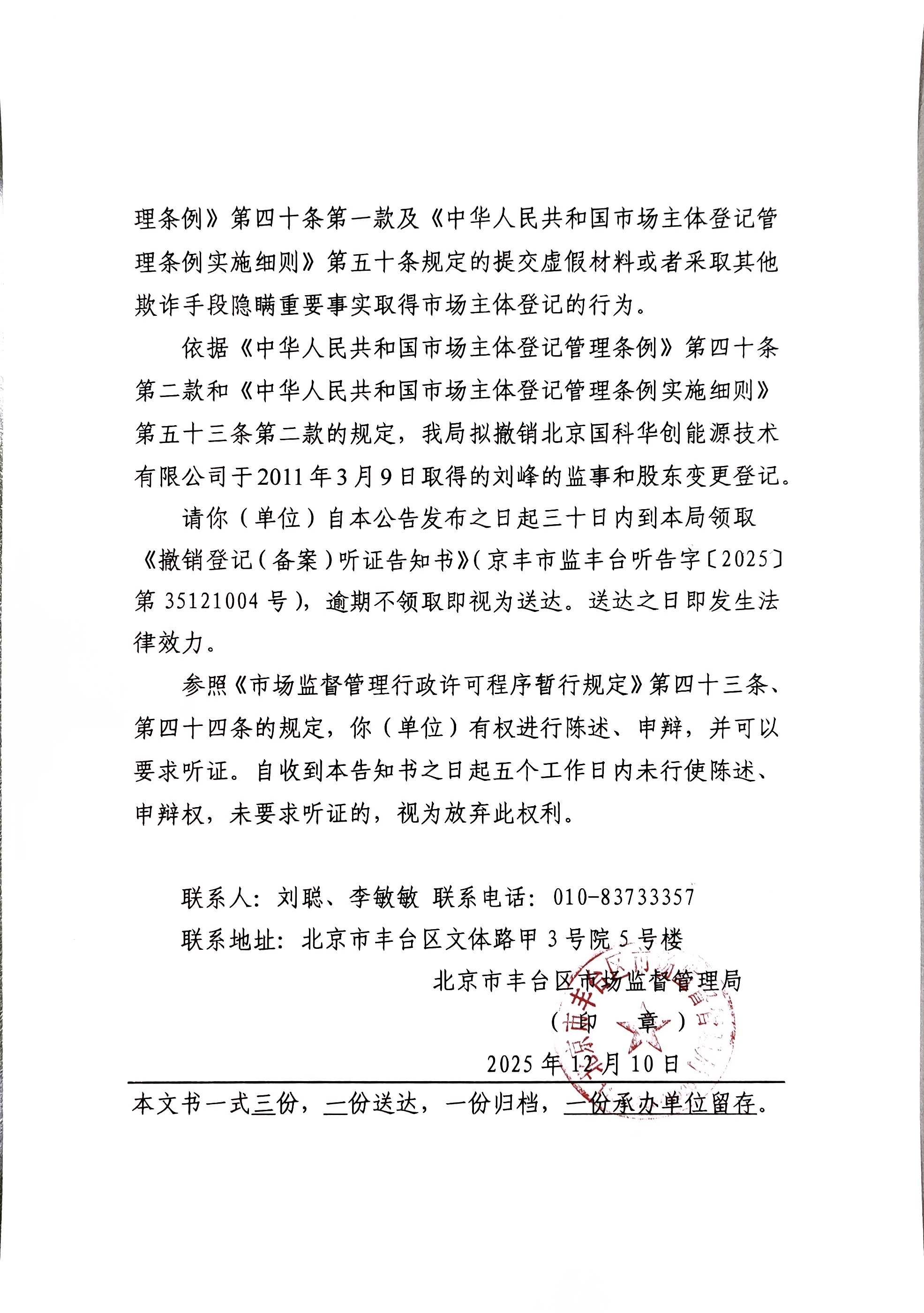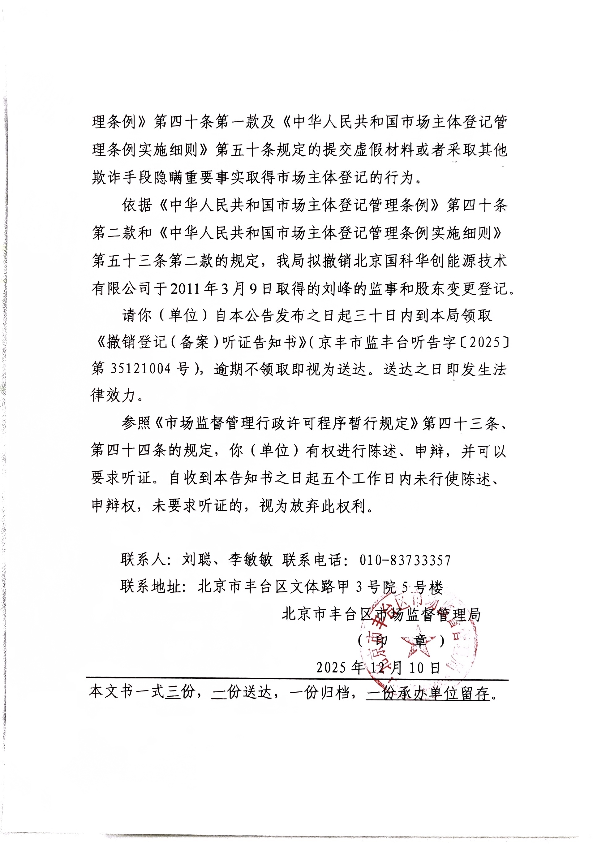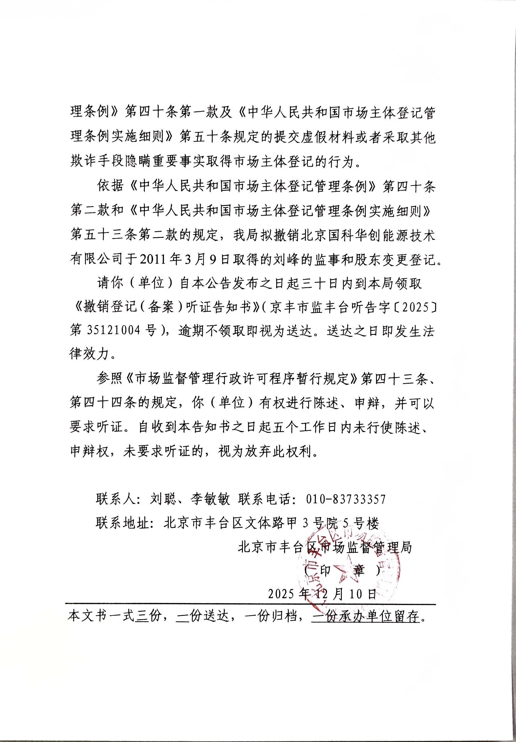 撤销登记(备案)文书送达公告-北京国科华创能源技术有限公司、仰宝真、周大昌、周洁、周谨、俞莉莉