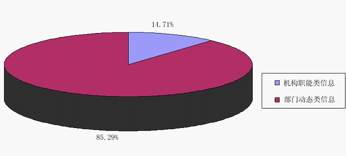 通过政府信息公开专栏主动公开政府信息34条,全文电子化率为100%。其中,更新机构职能类信息5条,占总体的比例为14.71%;法规文件类信息0条;行政职责类信息0条,部门动态类信息29条,占总体的比例为85.29%。