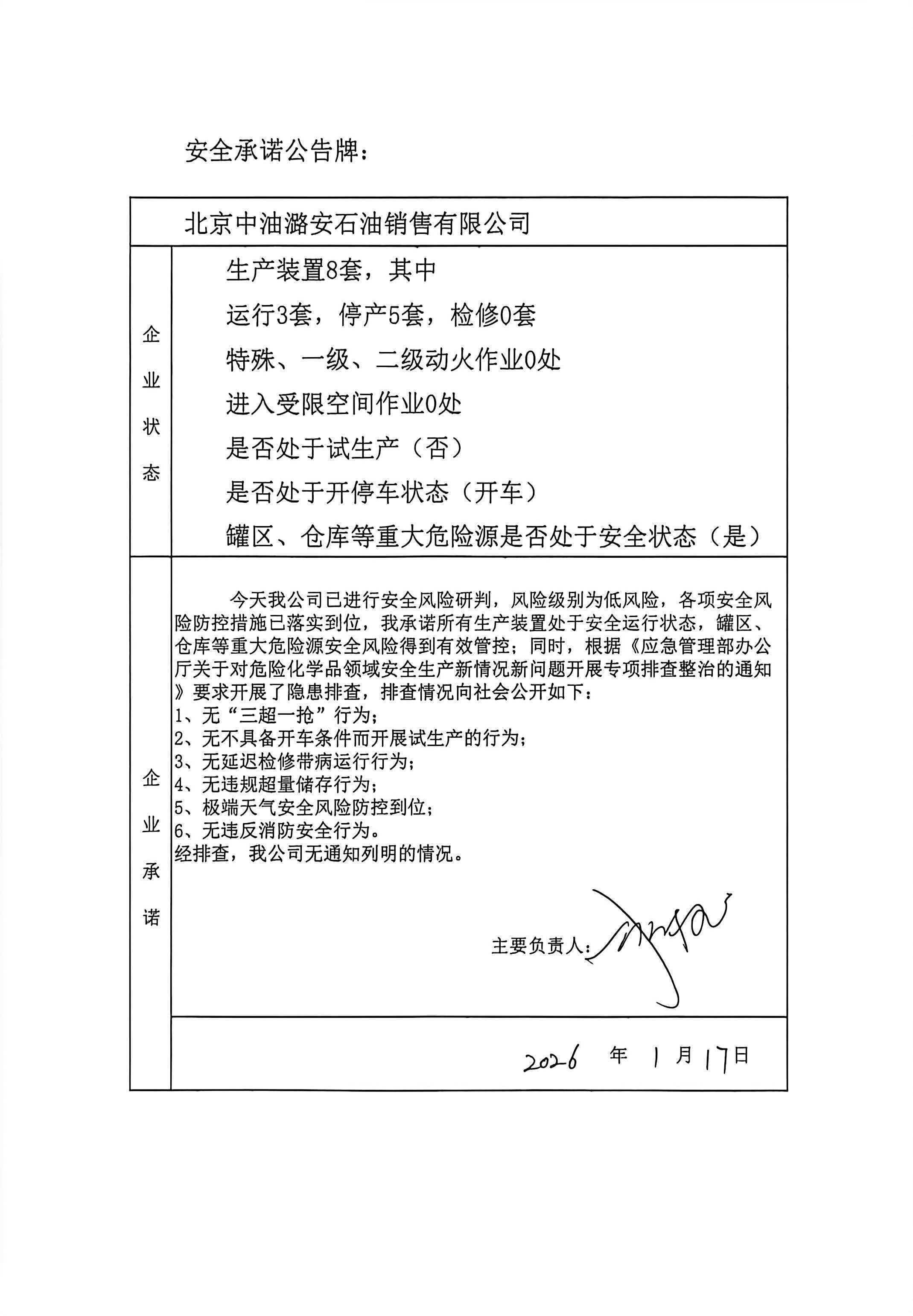 北京中油潞安石油销售有限公司安全承诺公告牌0117