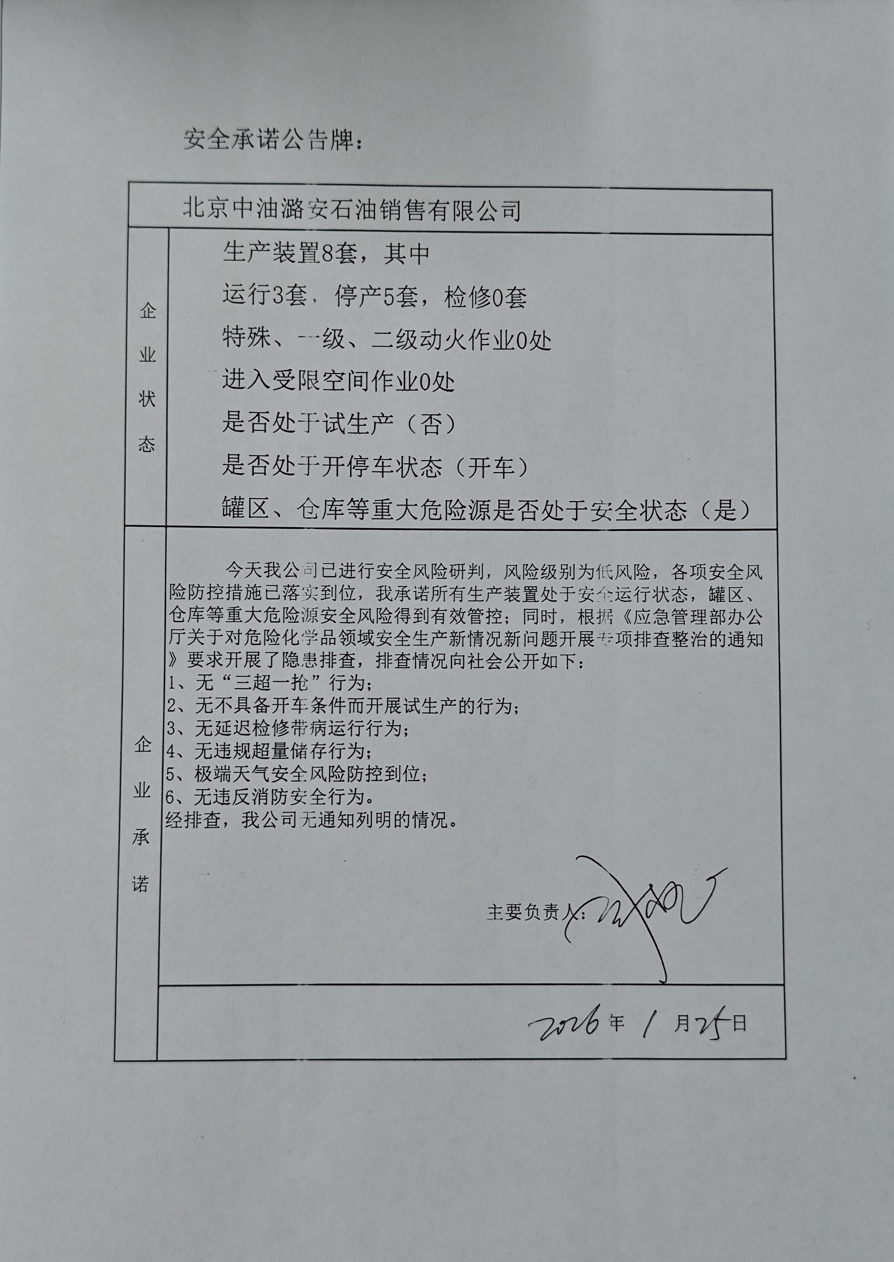 北京中油潞安石油销售有限公司安全承诺公告牌0125