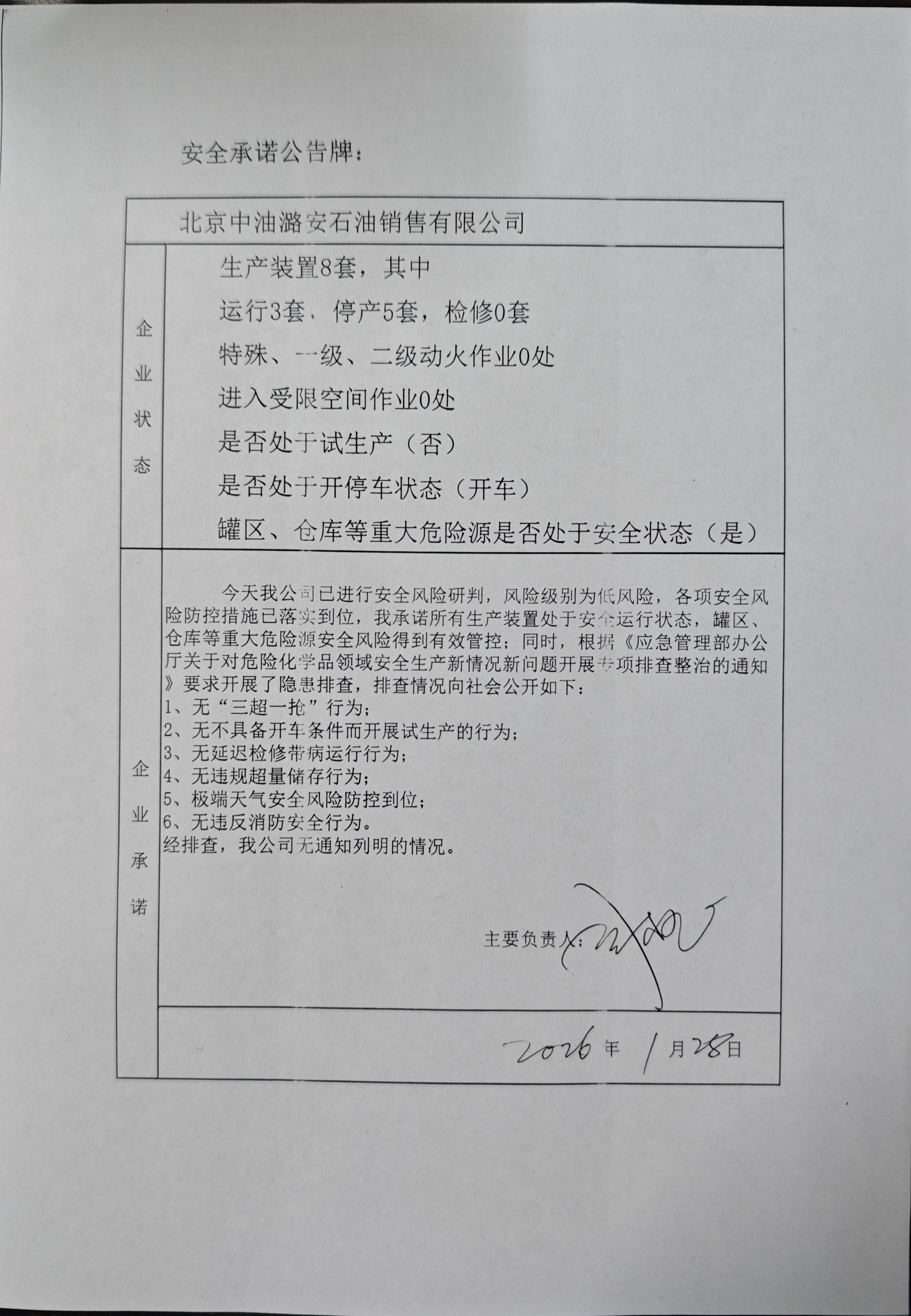 北京中油潞安石油销售有限公司安全承诺公告牌0128