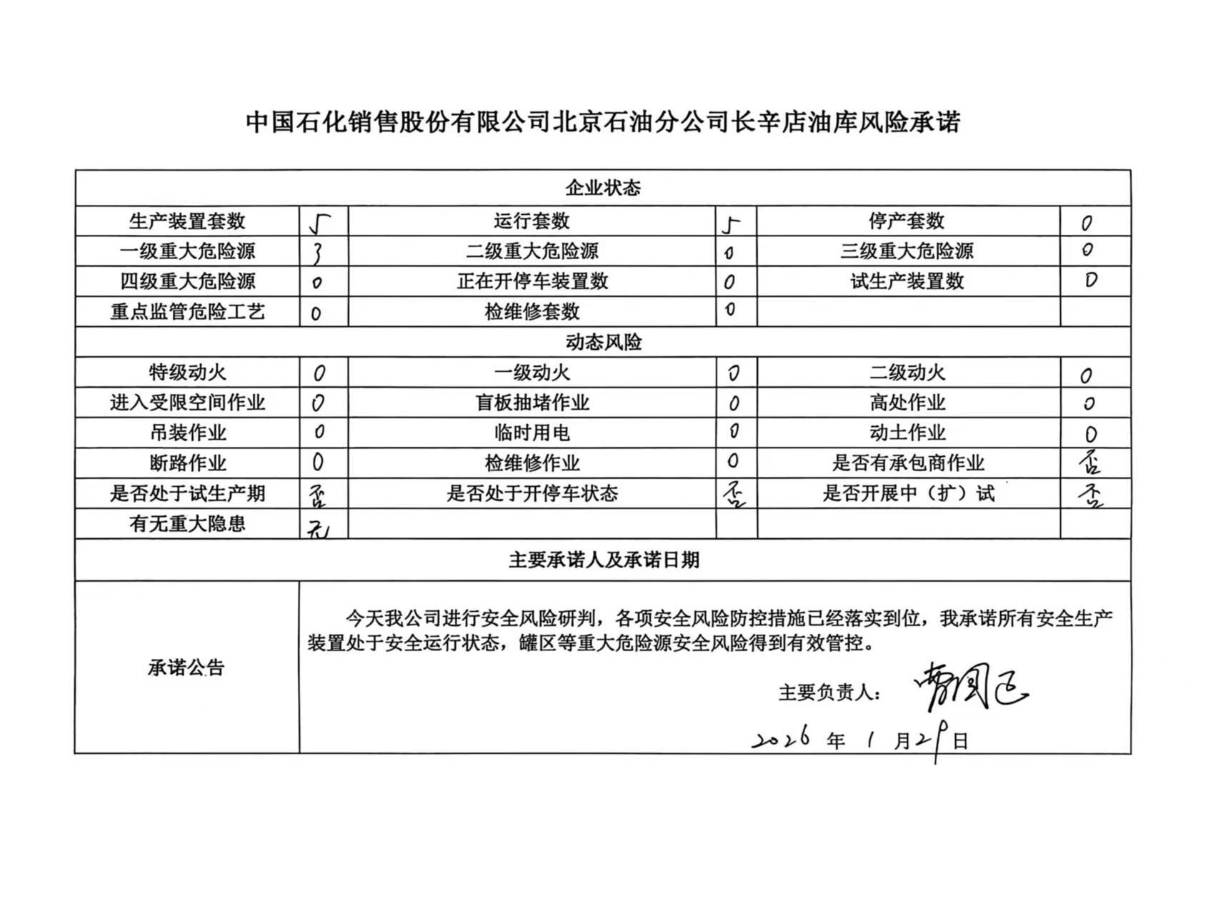 中国石化销售有限公司北京长辛店石油库安全承诺公告牌0129