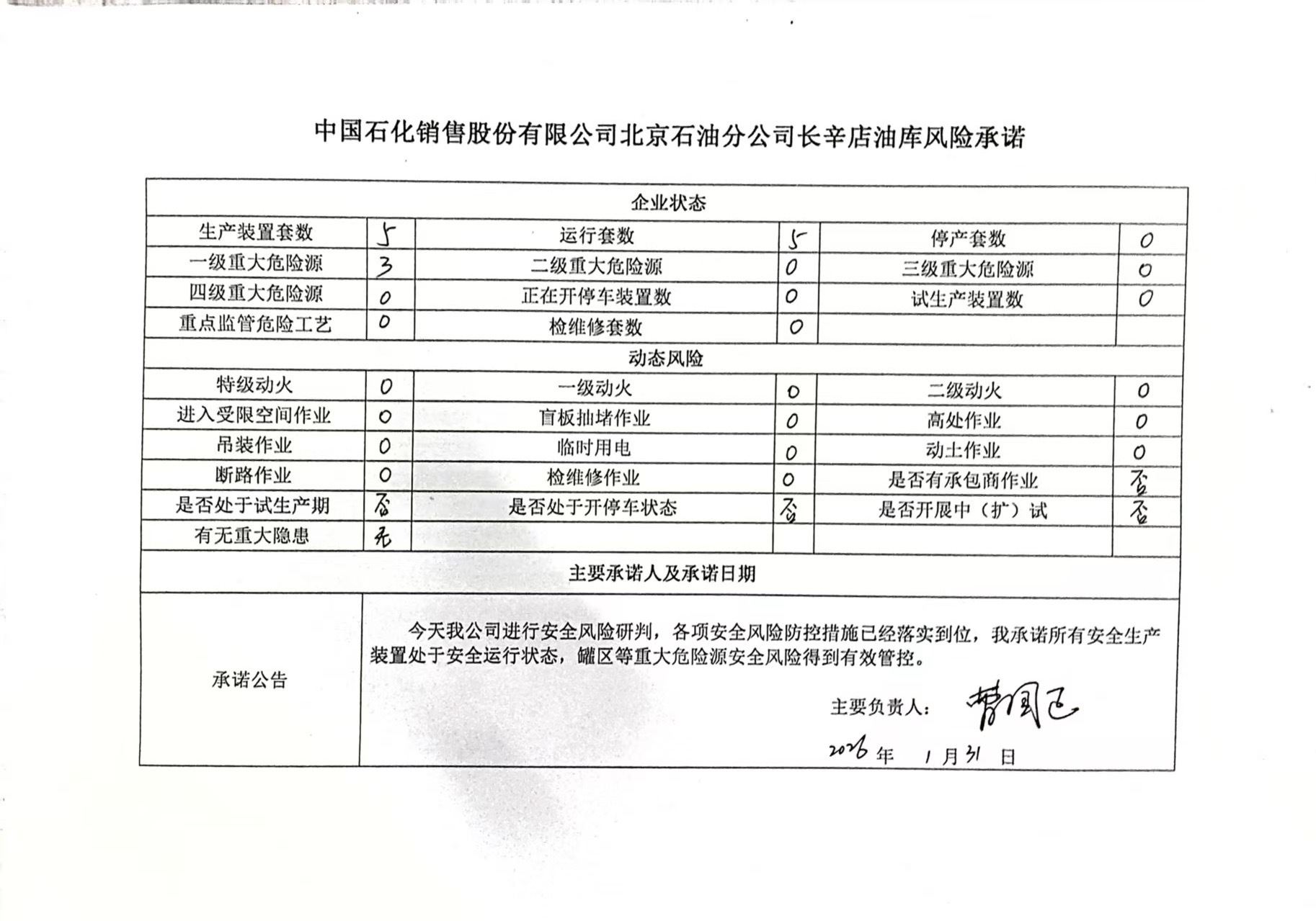 中国石化销售有限公司北京长辛店石油库安全承诺公告牌0131