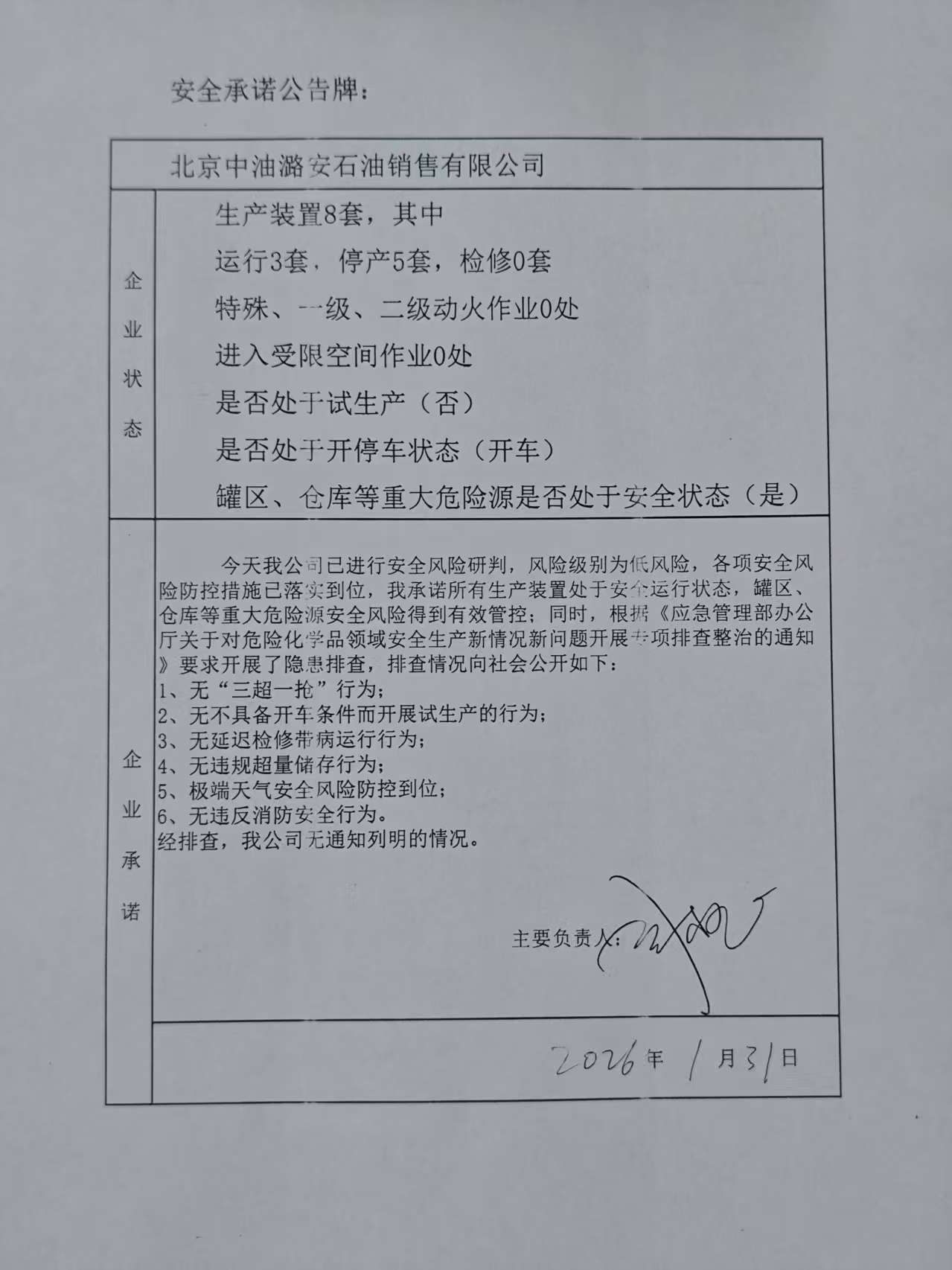 北京中油潞安石油销售有限公司安全承诺公告牌0131