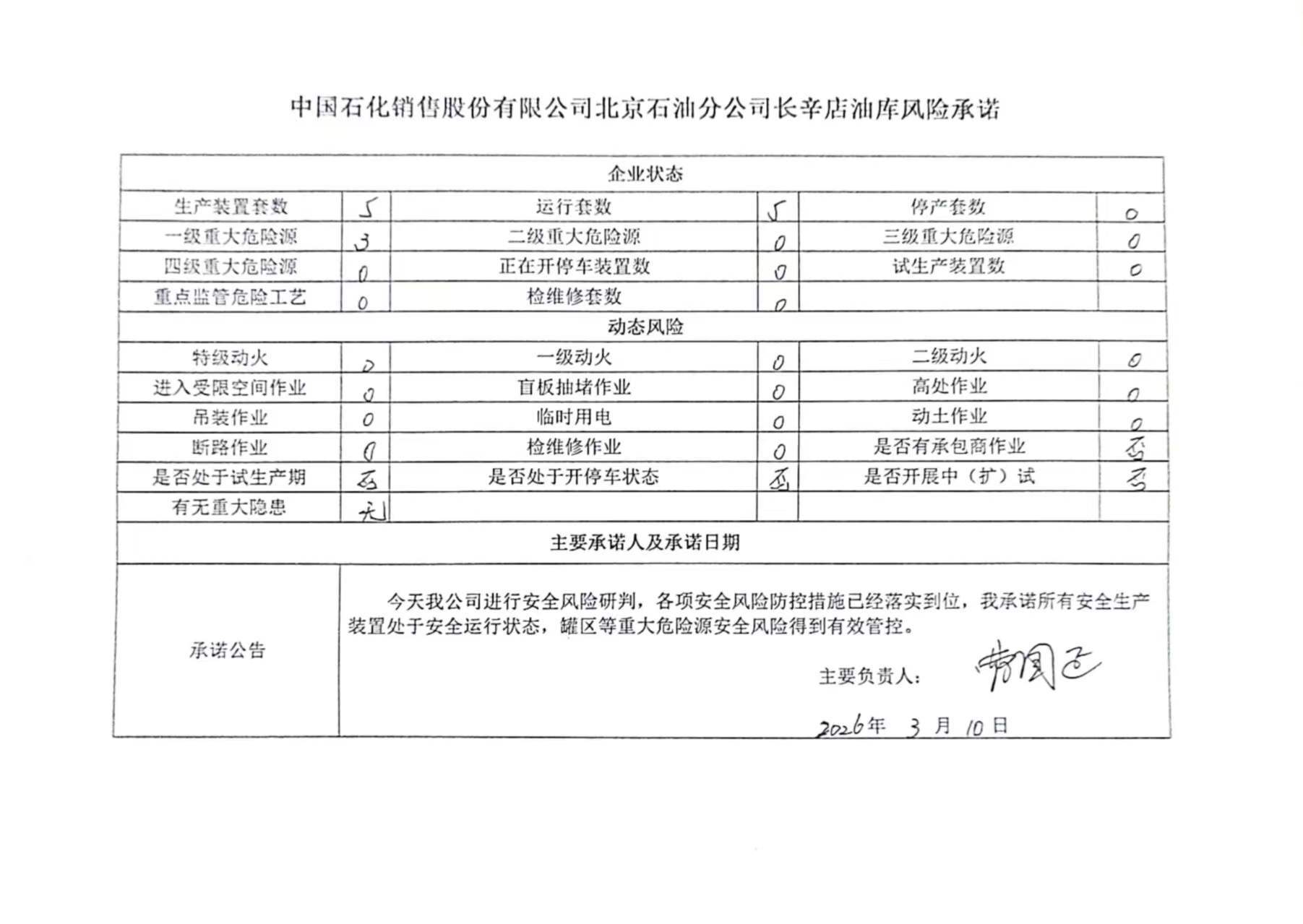 中国石化销售有限公司北京长辛店石油库安全承诺公告牌0310