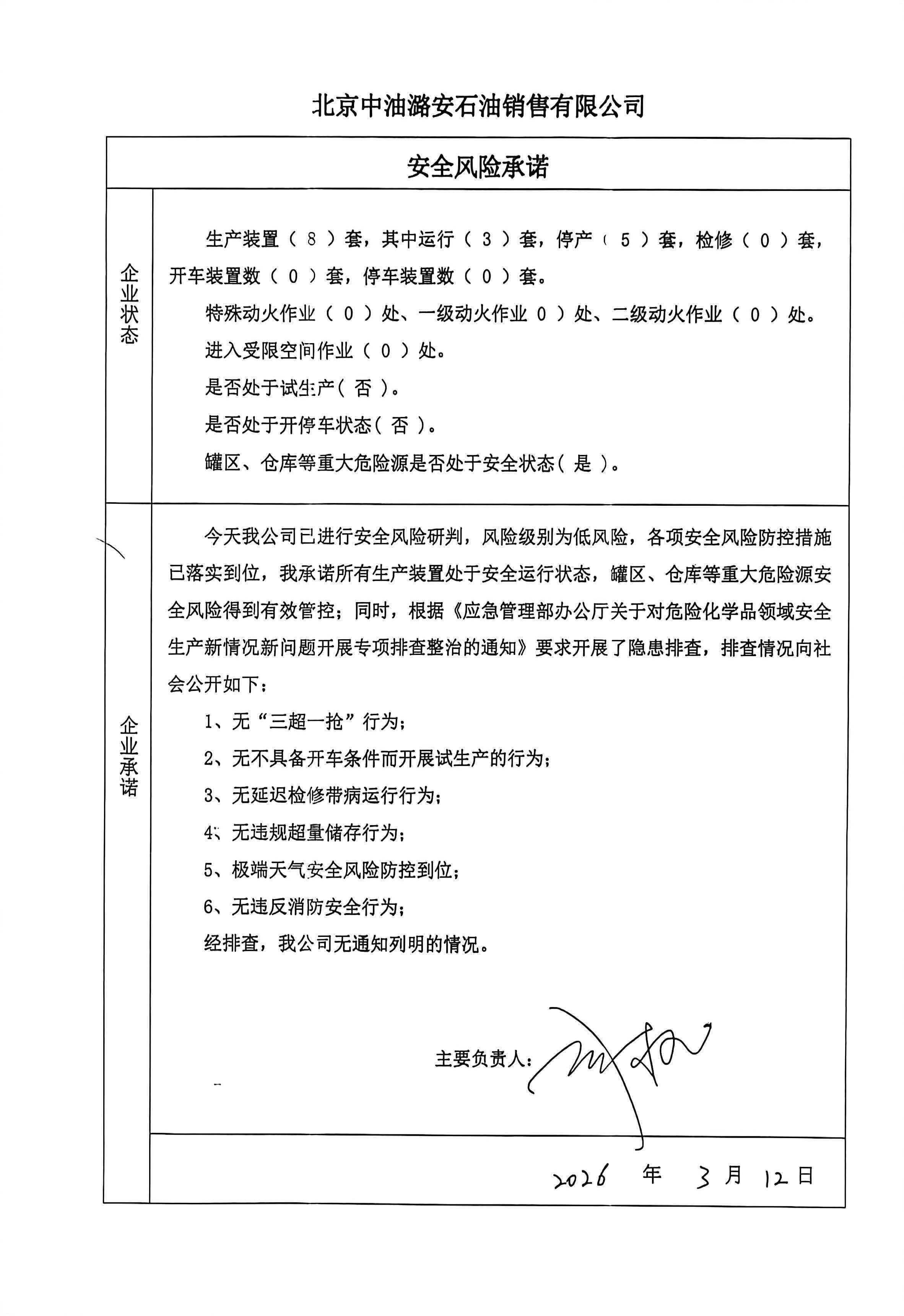 北京中油潞安石油销售有限公司安全承诺公告牌0312