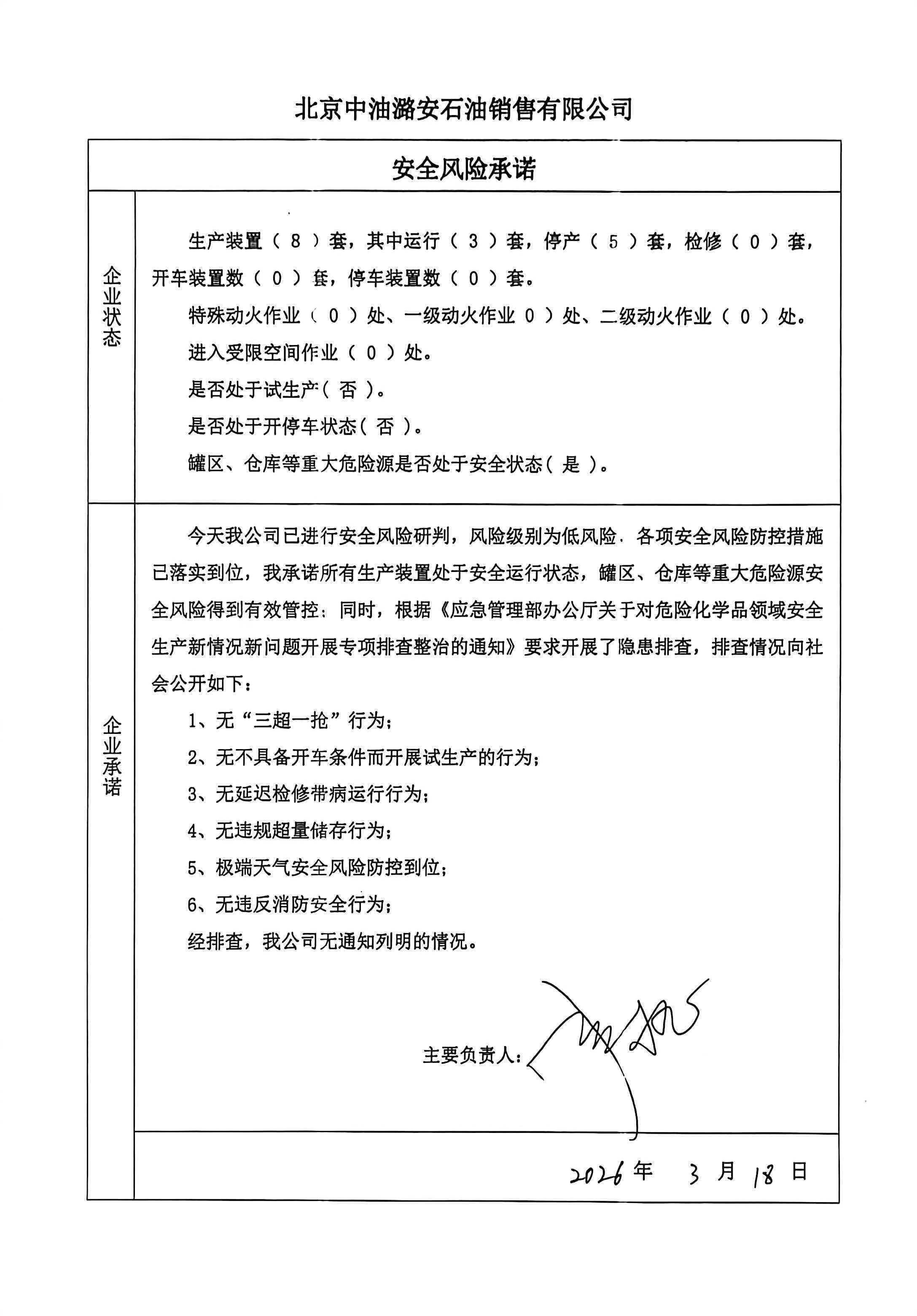 北京中油潞安石油销售有限公司安全承诺公告牌0318