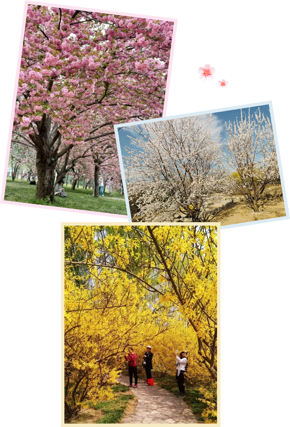 莲花池公园的晚樱园位于公园西北角,高大繁茂的樱花树立在碧绿的草坪上,一团团一簇簇的樱花挤在枝条上好似倾泻而下的玫红色瀑布。