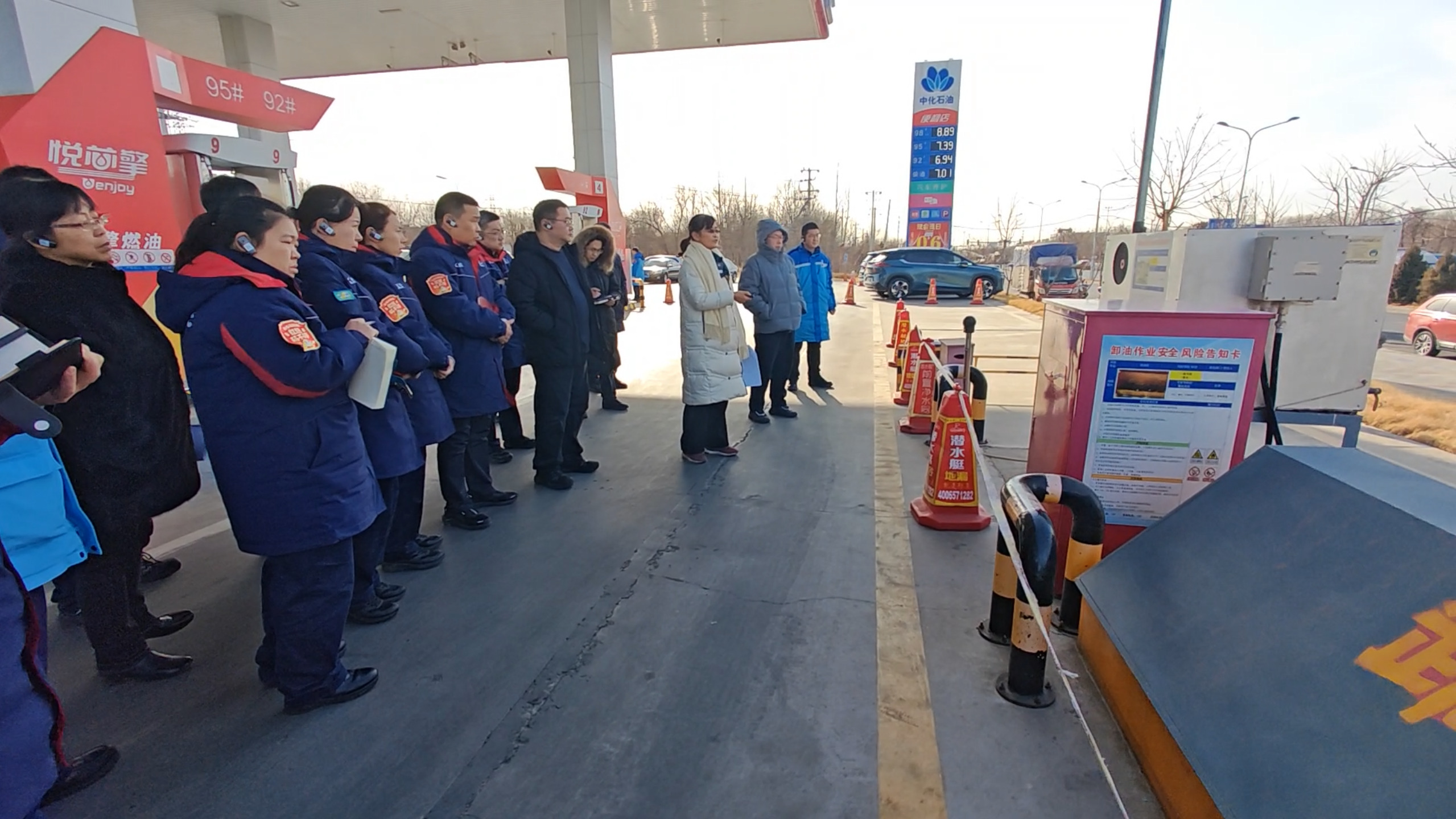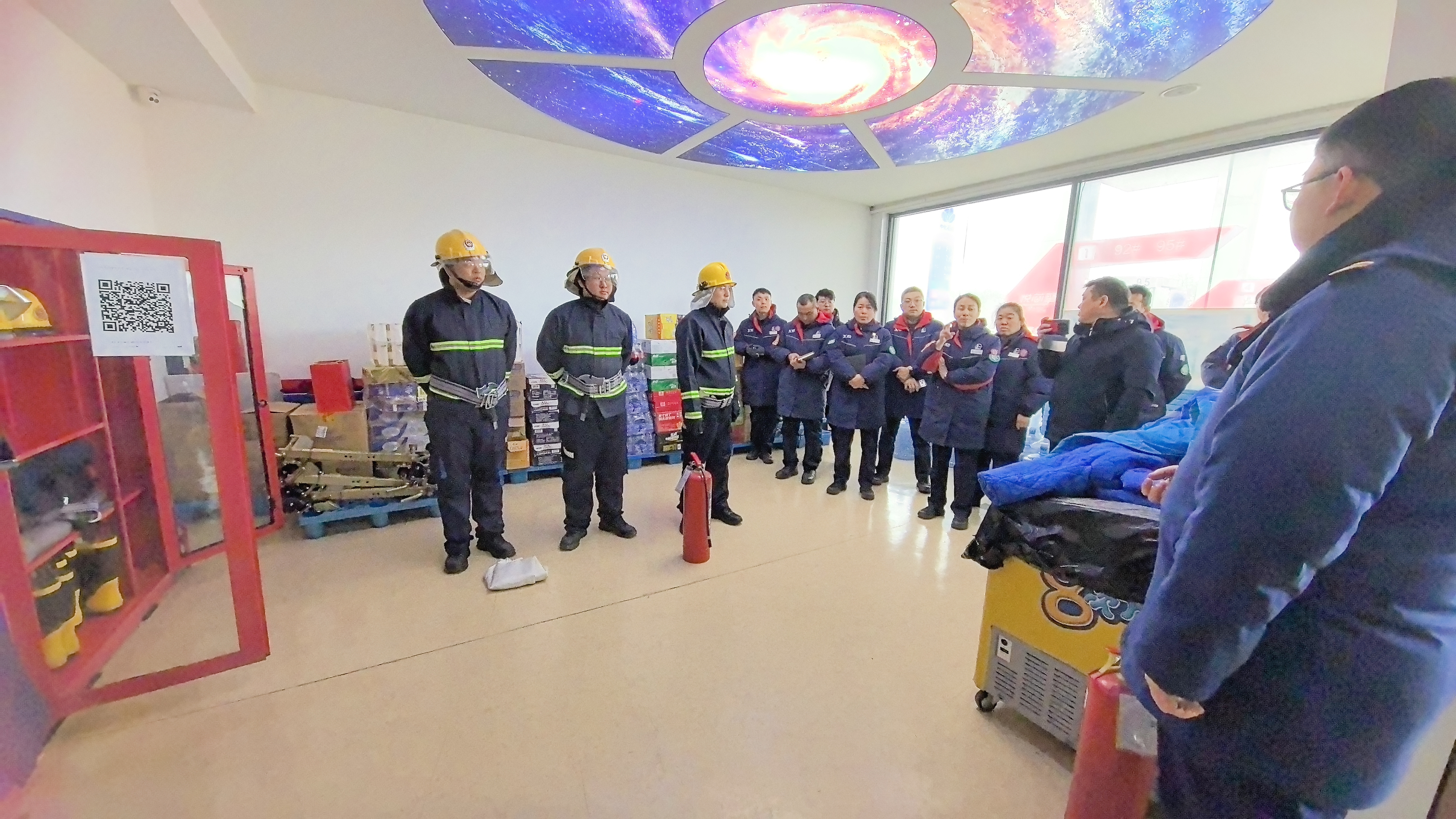 下午,观摩活动在加油站接续开展,紧扣油罐区、加油机、卸油作业、油气回收、消防应急、防静电与防雷等关键风险点位实施精准排查。演练环节聚焦实战开展微型消防站拉动演练,站内微型消防站队员快速集结、穿戴装备、协同处置,充分展示了基层应急力量快速响应、先期处置的实战能力。