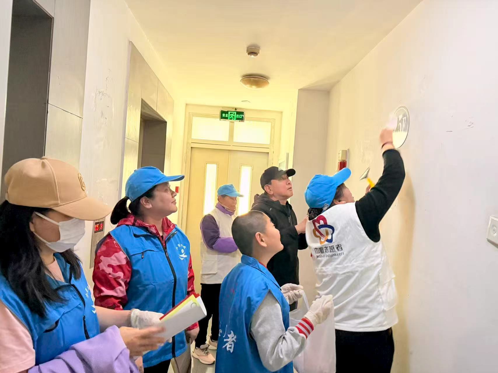 在社区东北角,小爱志愿者开展“文明礼让斑马线”专项劝导行动,引导居民自觉遵守交通规则,机动车礼让行人、行人规范通行,共同守护社区周边道路安全有序。同时,社区党员联合小志愿者共同开展楼道环境整治,大家手持铲刀、抹布等工具分工协作,集中清理墙面小广告、乱贴乱画。党员率先垂范、细致铲除,小志愿者认真擦拭、踊跃参与,以实际行动清除环境“牛皮癣”,让楼道面貌焕然一新。