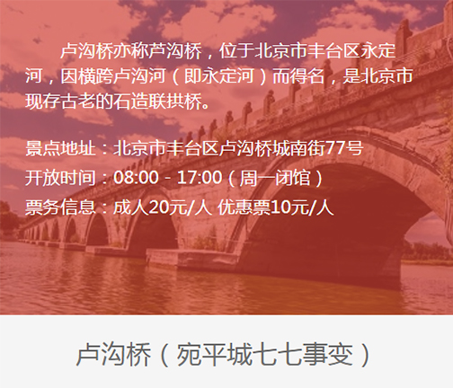 • 卢沟桥(宛平城七七事变)